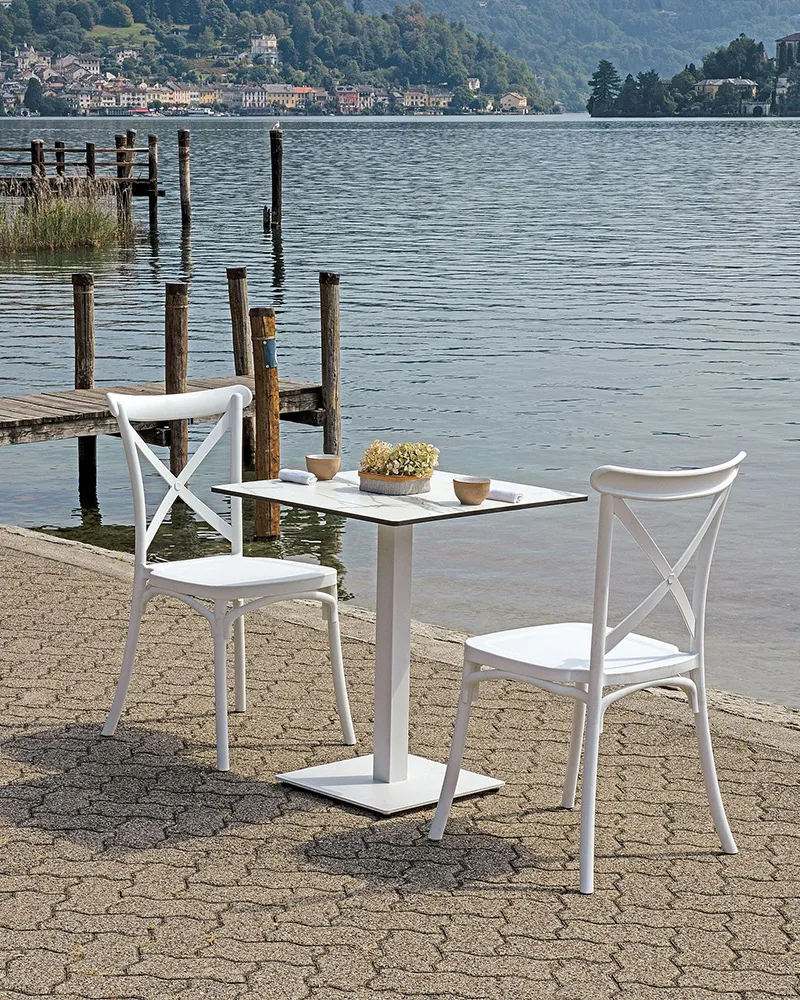 Aris è una sedia in polipropilene rinforzato con fibra di vetro, leggera ma estremamente durevole, studiata per durare anche in ambienti esterni, grazie alla resistenza ai raggi UV. Il suo stile tradizionale si adatta perfettamente a bistrot, bar, trattorie e dehors.