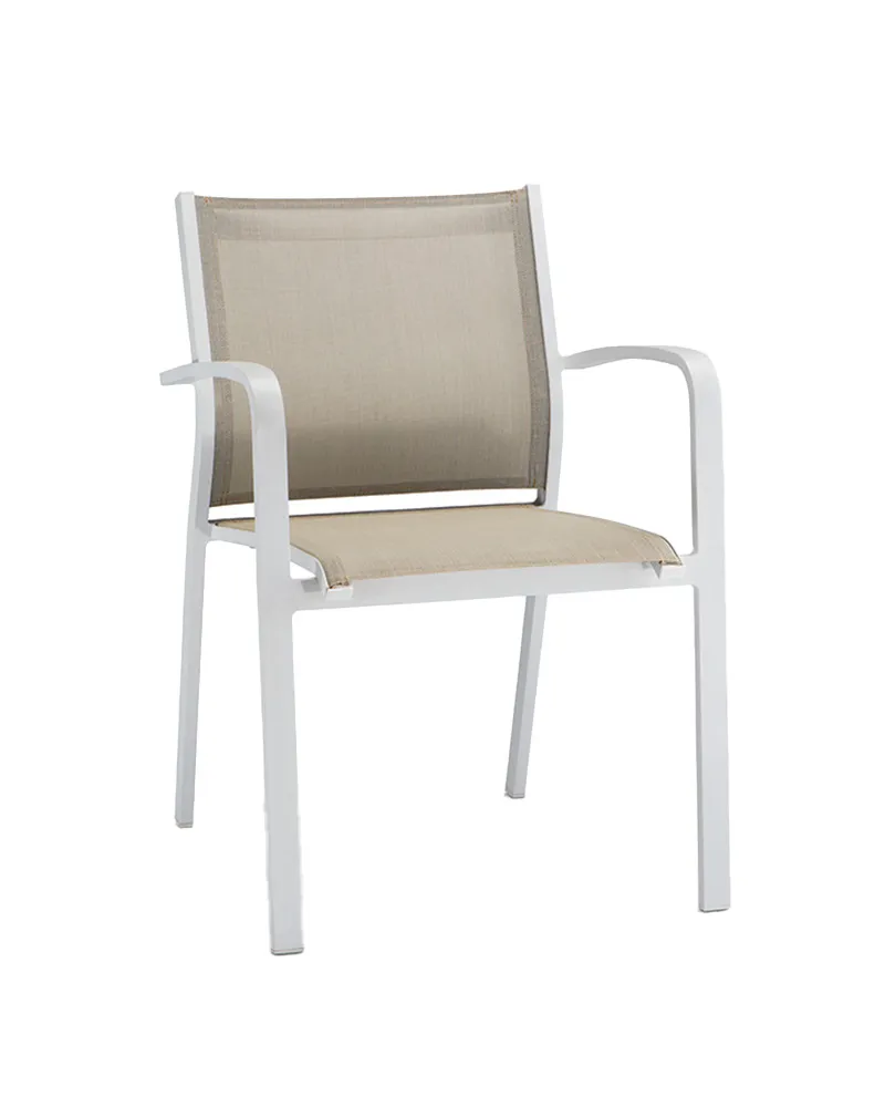 Barbara è una poltroncina dal design pratico e versatile, pensata per un utilizzo professionale sia in ambienti interni che esterni. La struttura in alluminio, con tubo da 1,5 mm di spessore, garantisce leggerezza, solidità e resistenza alla corrosione, mentre il rivestimento in textilene assicura comfort e durata nel tempo, anche in condizioni climatiche variabili. La possibilità di impilarla la rende perfetta per ottimizzare gli spazi in contesti come dehor, terrazze di hotel, sale colazioni, aree lounge o location per eventi.