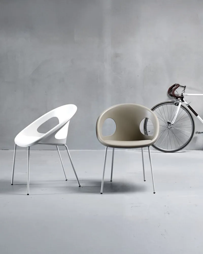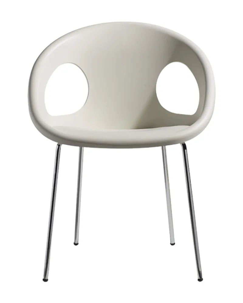 Drop è una sedia dal design fresco e funzionale, caratterizzata da una scocca in tecnopolimero riciclabile con due fori decorativi che le conferiscono un’estetica distintiva. Il corpo monoscocca, realizzato in un unico pezzo tra seduta e schienale, offre una soluzione leggera e resistente, ideale per ambienti contract. Impilabile e pratica, è perfetta per spazi dinamici e multifunzionali.