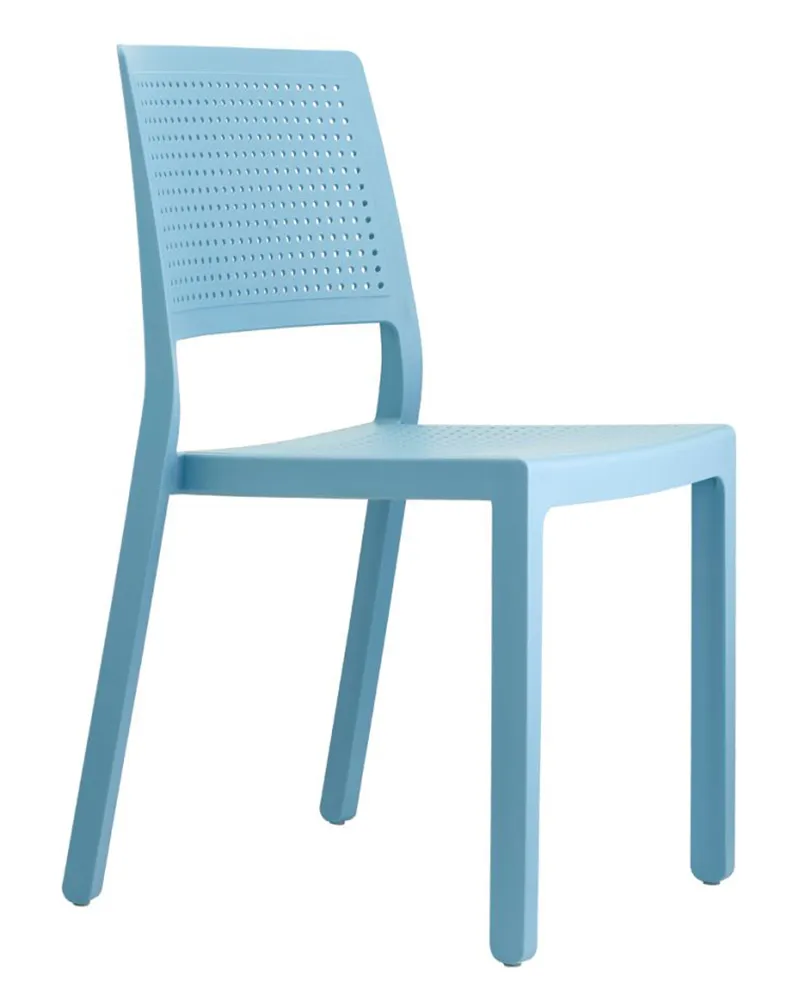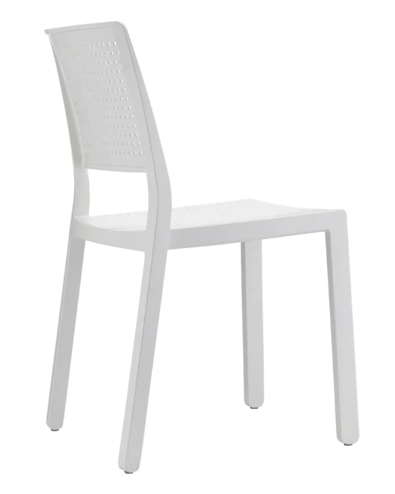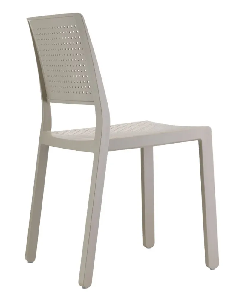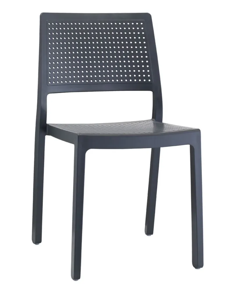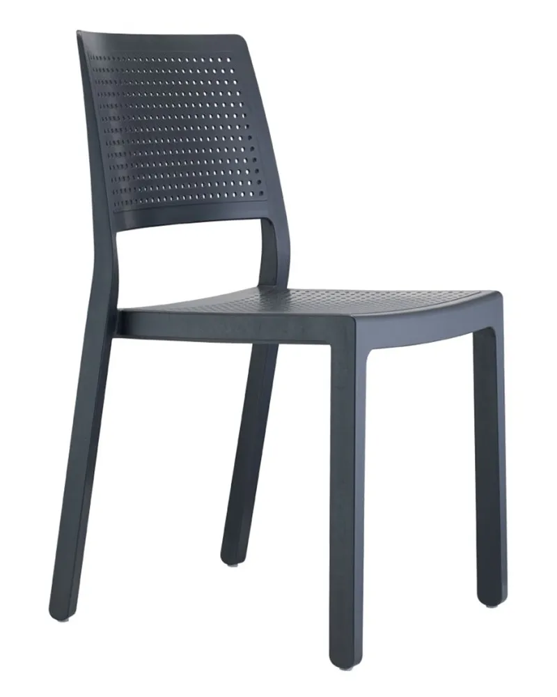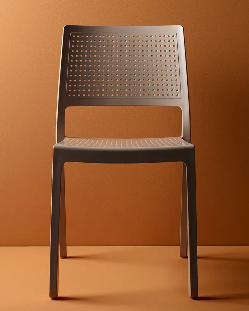 La sedia Emi, interamente in tecnopolimero, è caratterizzata da un design sobrio e traforato che la rende perfetta per l’uso esterno. Le gambe monoblocco consentono un impilaggio stabile e salvaspazio. Disponibile in diversi colori, è resistente e leggera.