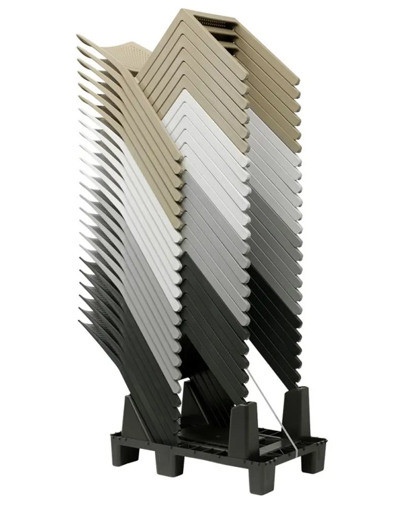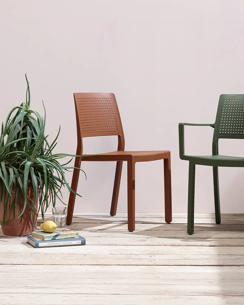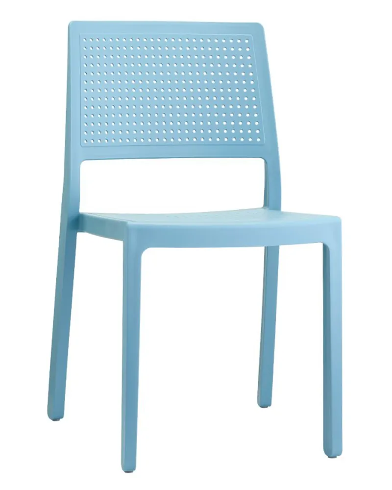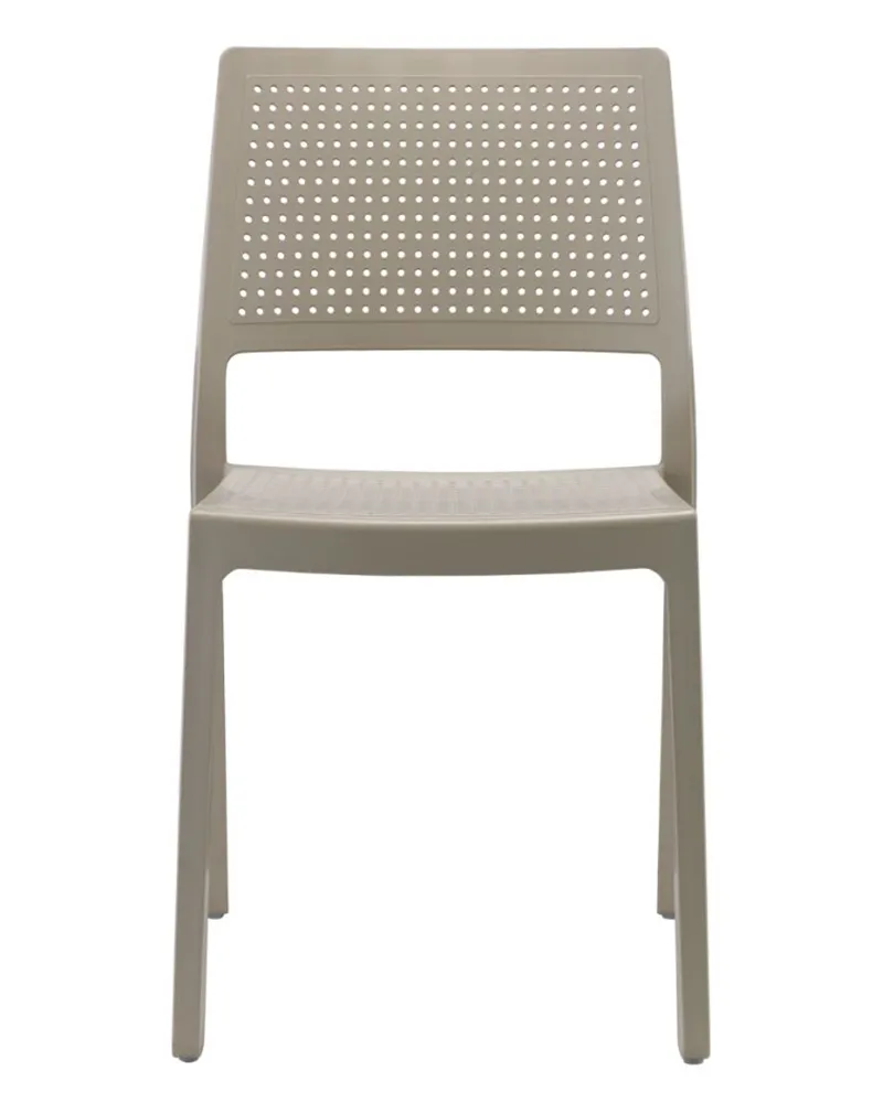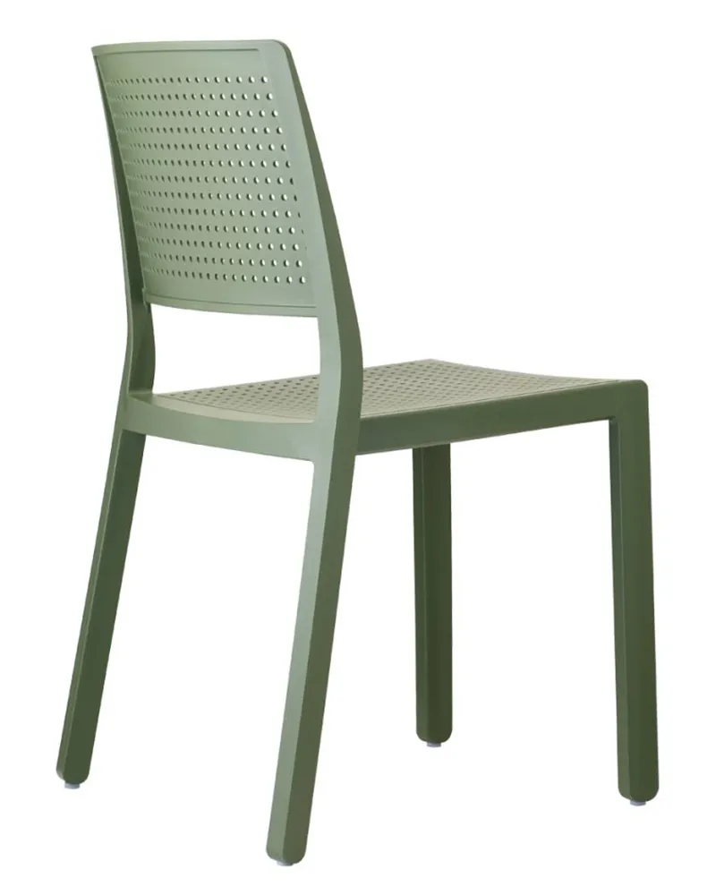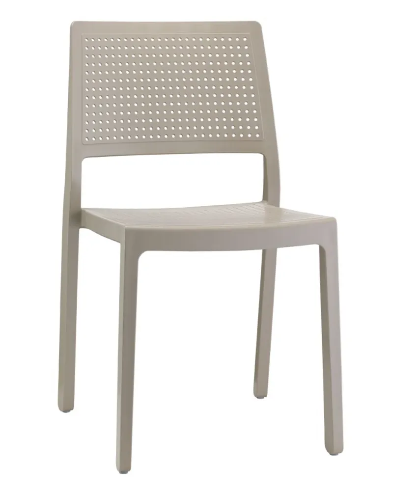 La sedia Emi, interamente in tecnopolimero, è caratterizzata da un design sobrio e traforato che la rende perfetta per l’uso esterno. Le gambe monoblocco consentono un impilaggio stabile e salvaspazio. Disponibile in diversi colori, è resistente e leggera.