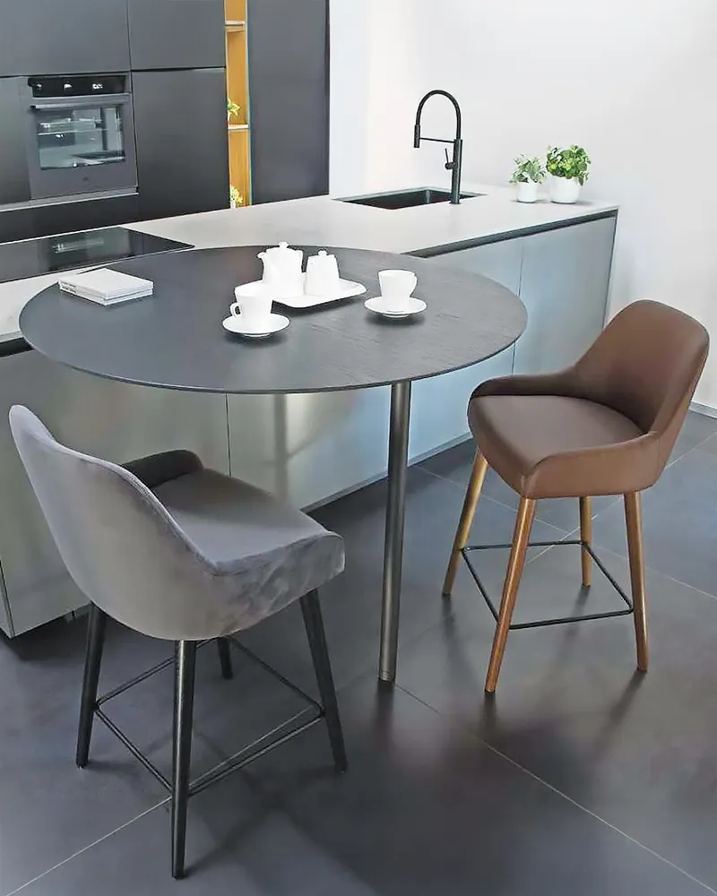 Giada è uno sgabello che unisce la sobrietà del suo design alla qualità dei materiali. Con una struttura in legno e una seduta unica rivestita in ecopelle o tessuto, garantisce eleganza, comfort e robustezza. Le sue linee pulite lo rendono ideale per spazi contemporanei, dalla ristorazione all’hotellerie. Disponibile in due altezze (H65 e H75), si inserisce armoniosamente in qualsiasi contesto, aggiungendo un tocco di stile.