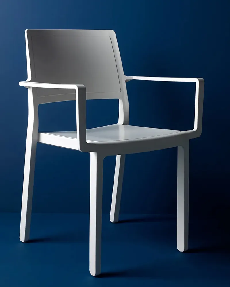 Comfort e robustezza si incontrano nella poltrona Kate, grazie ai braccioli integrati e a una struttura che assicura facilità di impilaggio e stabilità. Realizzata in tecnopolimero, è ideale per spazi dinamici come bar, terrazze e zone d’attesa, interpreta con stile ambienti indoor e outdoor.