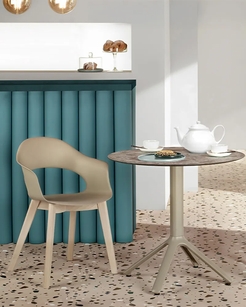 Avvolgente e sinuosa, Lady B combina comfort e stile in una seduta ideale per ristoranti, bar, lounge e ambienti contract. La scocca curva abbraccia la persona offrendo sostegno naturale, mentre la base in acciaio tubolare assicura stabilità ed eleganza. Una sedia impilabile dall’estetica raffinata, progettata per aggiungere personalità agli spazi contemporanei.