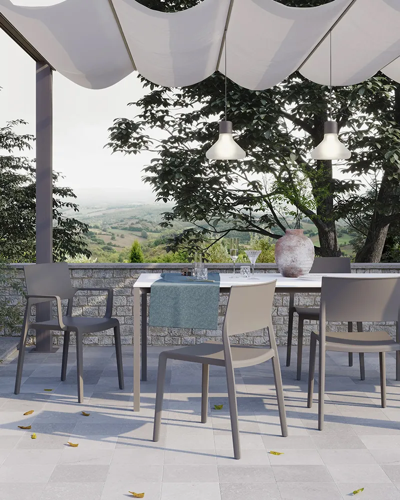 Realizzata in tecnopolimero riciclato, la sedia Lilibet è impilabile, leggera e dal design deciso. Con dimensioni generose e una seduta confortevole, è adatta a ogni ambiente, anche all’aperto. Unisce estetica moderna e sostenibilità, con materiali ecocompatibili di ultima generazione.
