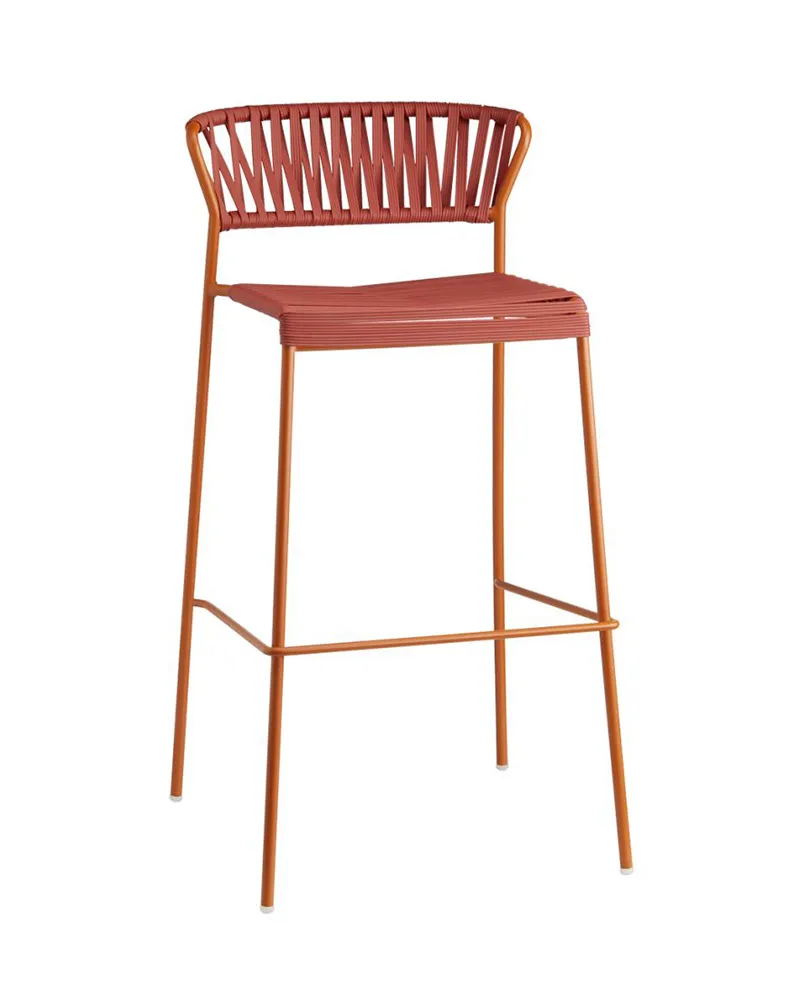 Lo sgabello Lisa filò interpreta l’eleganza informale anni ’50 e ’60 con un intreccio artigianale in estruso di PVC con anima in nylon. La struttura in acciaio zincato e verniciato a polvere poliestere unisce robustezza e leggerezza, garantendo un utilizzo agevole sia indoor che outdoor. Confortevole e ricercato, è lo sgabello perfetto per lounge, yacht club, locali sul mare e ambienti contract che cercano carattere e stile.