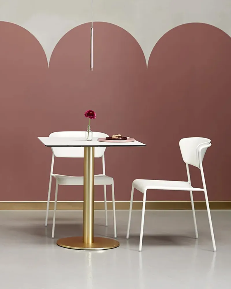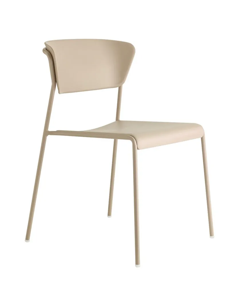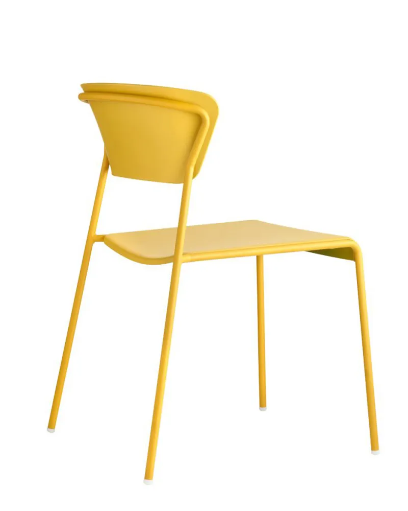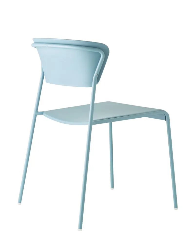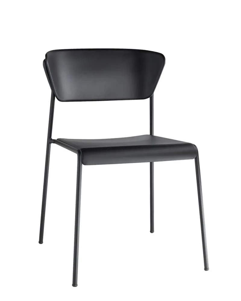 La versione Lisa in tecnopolimero mantiene la silhouette iconica della collezione, ma con una scocca in tecnopolimero e telaio in acciaio verniciato che la rendono più pratica e versatile. Impilabile e resistente alle intemperie, è perfetta per bar, ristoranti, hotel e spazi outdoor che richiedono design e durabilità.