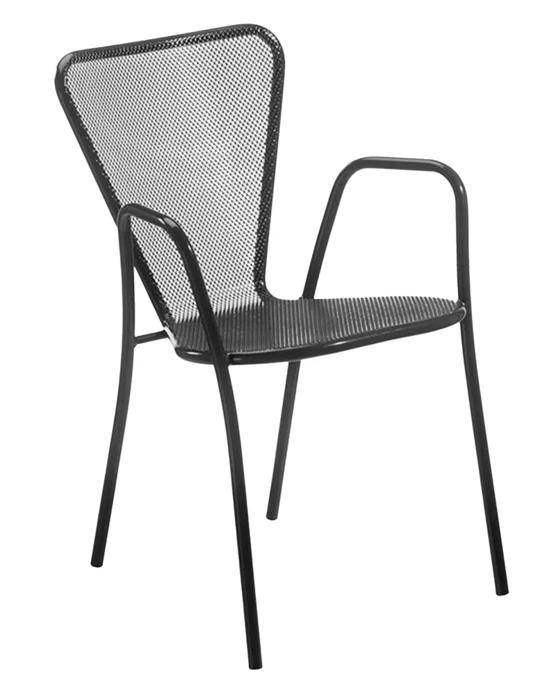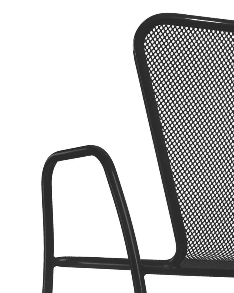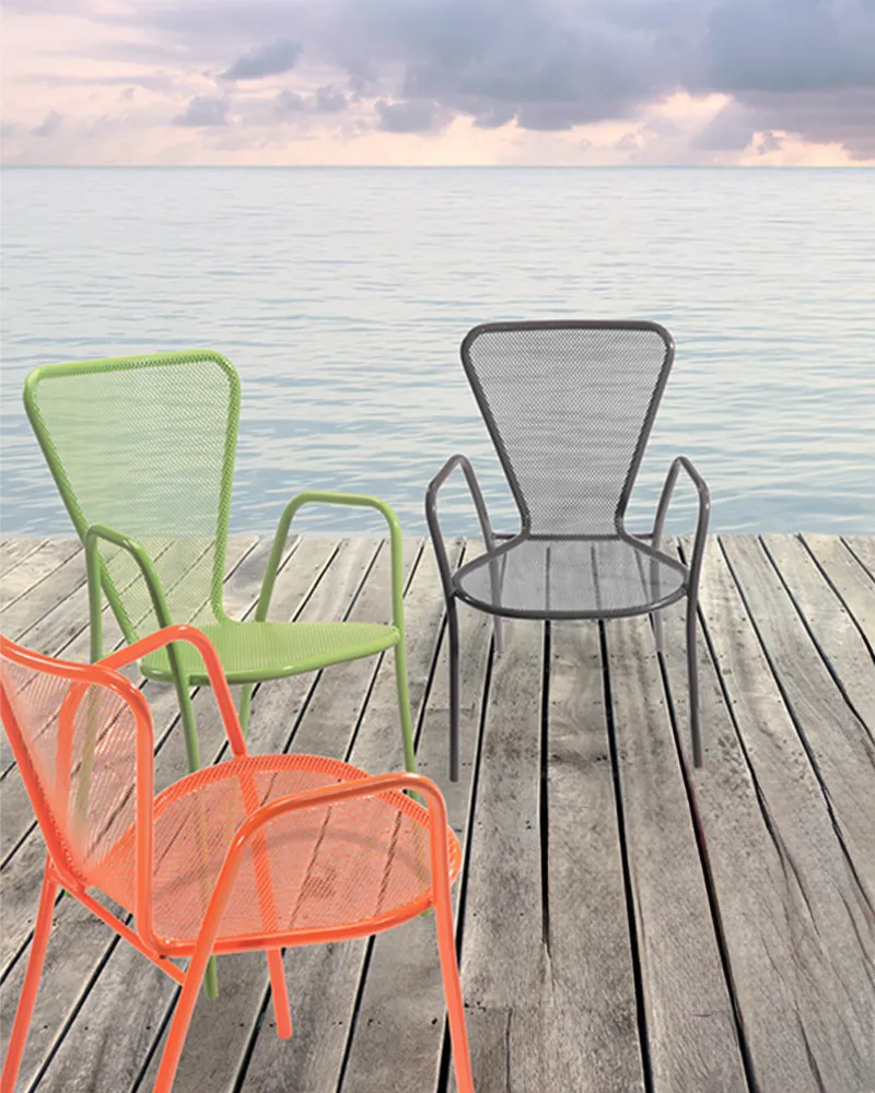 La poltrona Mareè è una seduta in metallo verniciato con braccioli, progettata per ambienti esterni e interni. Il suo corpo traforato dona comfort e leggerezza visiva, mentre la struttura impilabile consente di ottimizzare lo spazio. Una scelta versatile per bar, ristoranti e reception.