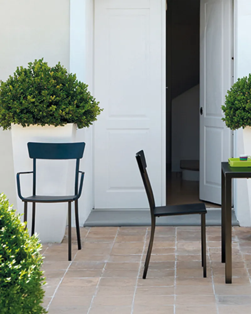 Robusta e funzionale, la sedia Mogan è realizzata in metallo zincato e verniciato a polvere, ideale per ambienti esterni e utilizzo professionale. Impilabile e facile da mantenere, offre una soluzione pratica per arredi contract dal design sobrio e contemporaneo.