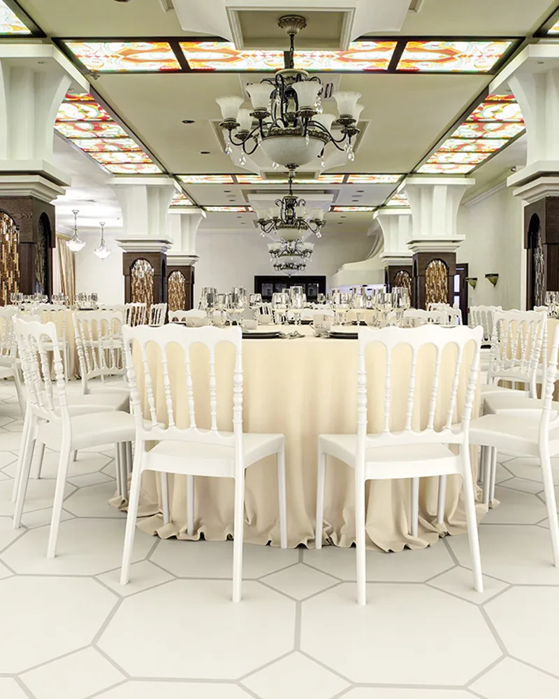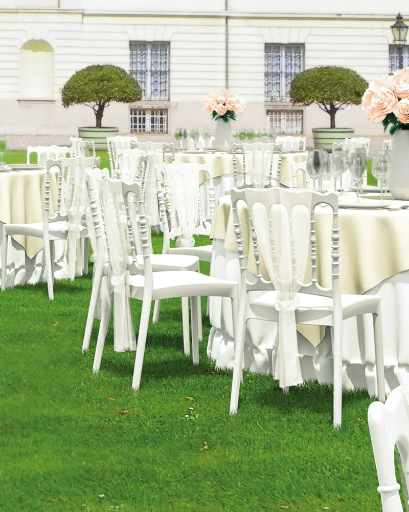 Nobile è una sedia in polipropilene rinforzato con fibra di vetro, progettata per offrire resistenza e versatilità in ogni contesto. La scocca monoblocco la rende solida e facile da pulire, perfetta per eventi, cerimonie, bar e ristoranti, sia indoor che outdoor. È ideale per ambienti dinamici e ad alta rotazione.