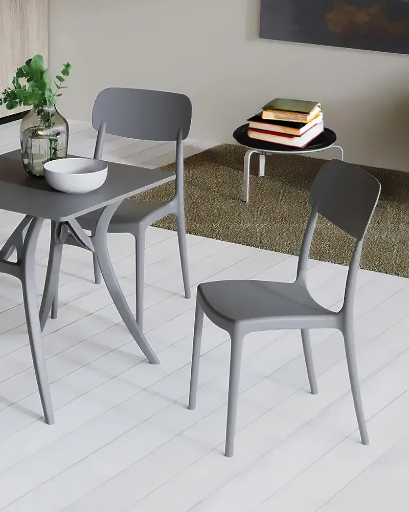 Con una linea essenziale e uno schienale pieno dal profilo morbido, la sedia Nova in polipropilene è perfetta per ambienti eleganti e funzionali. Solida e impilabile, si adatta con naturalezza a spazi interni ed esterni.