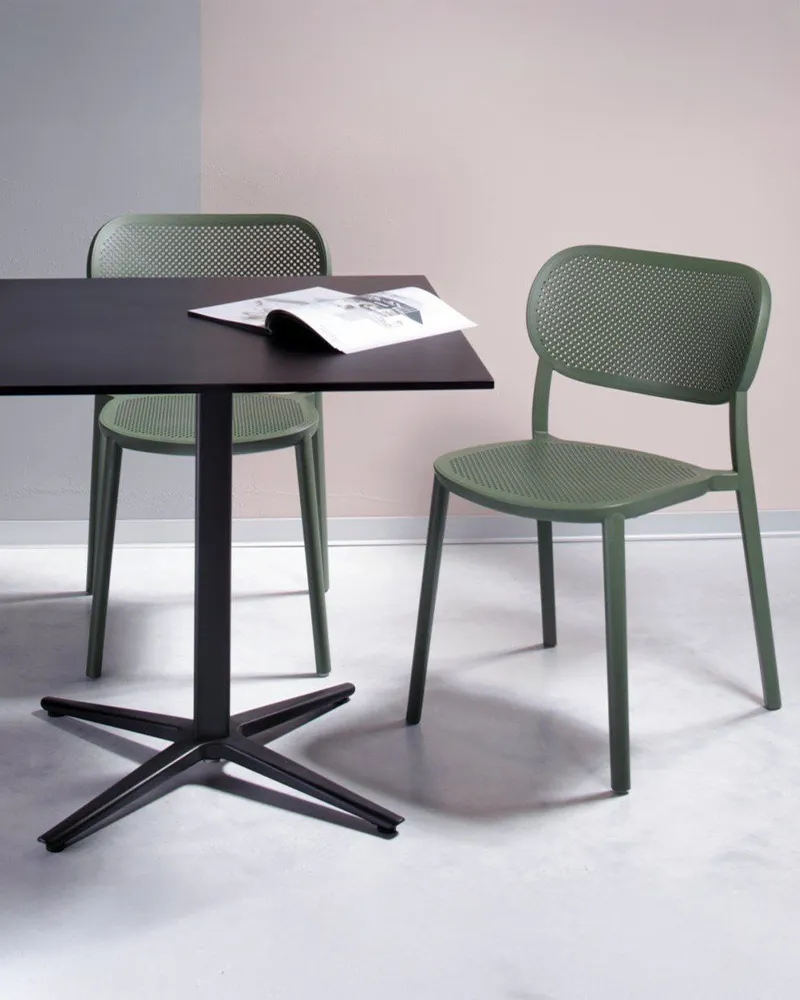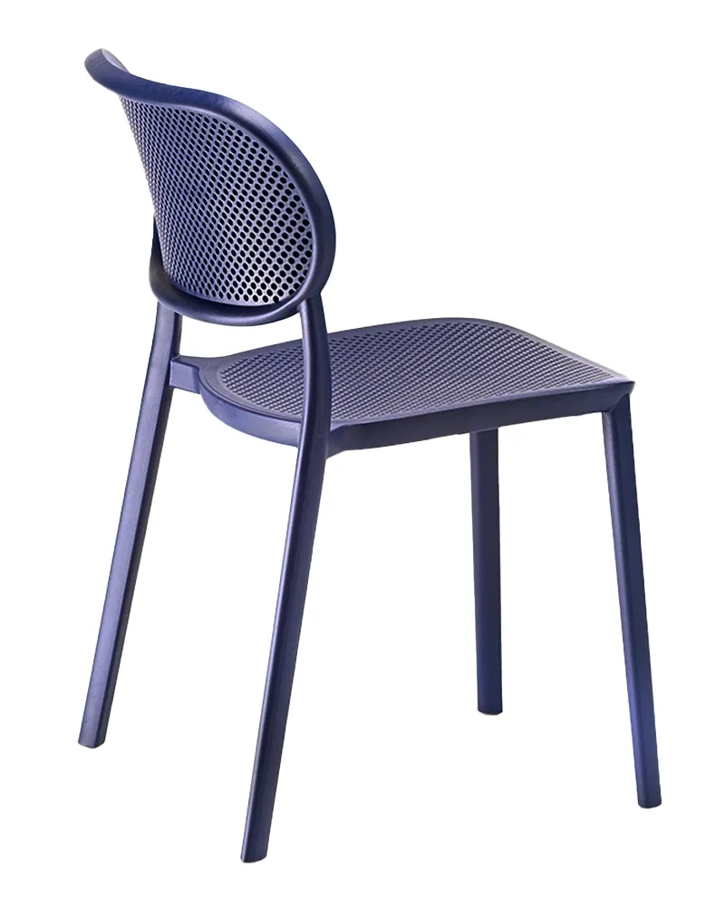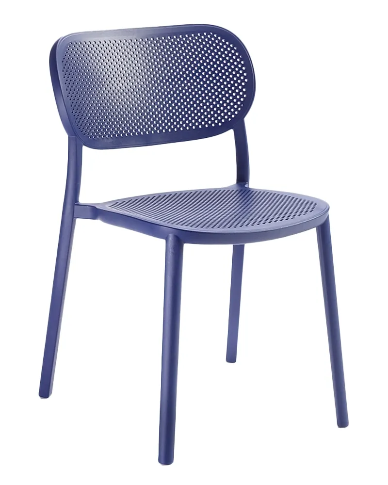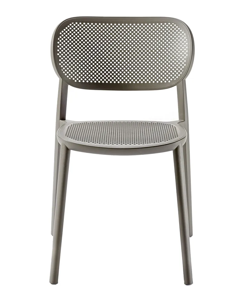 Design traforato, forme equilibrate e tecnopolimero resistente: la sedia Nuta è pensata per ambienti interni ed esterni che richiedono funzionalità e carattere. Impilabile e comoda, è disponibile in vari colori.