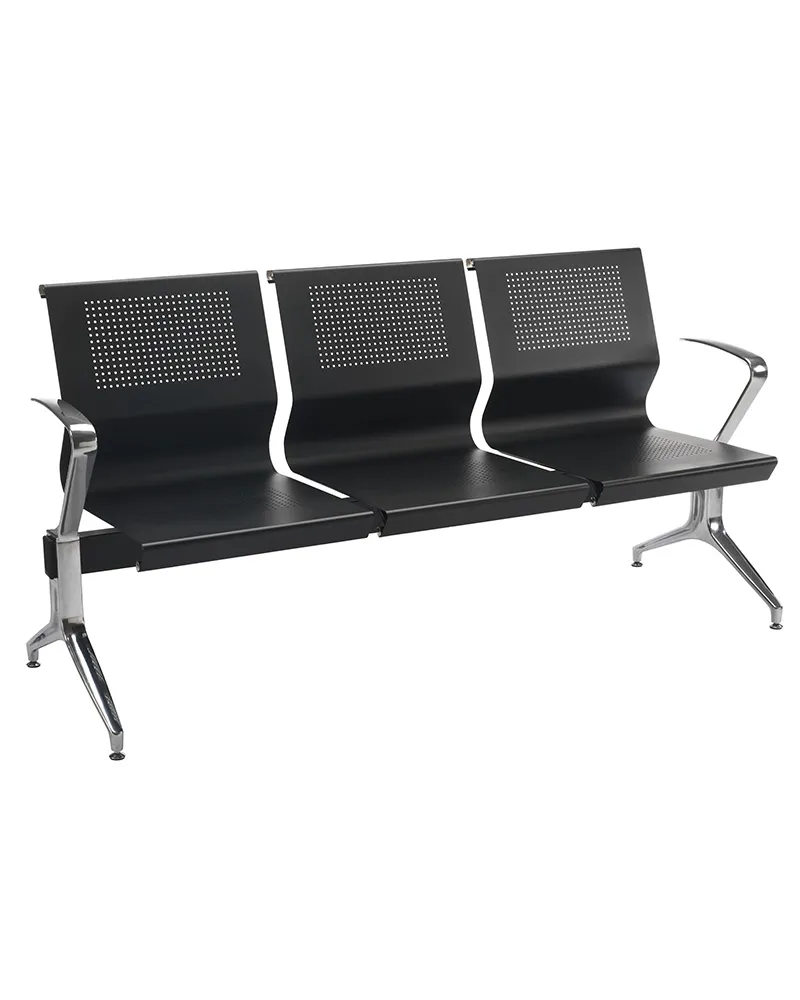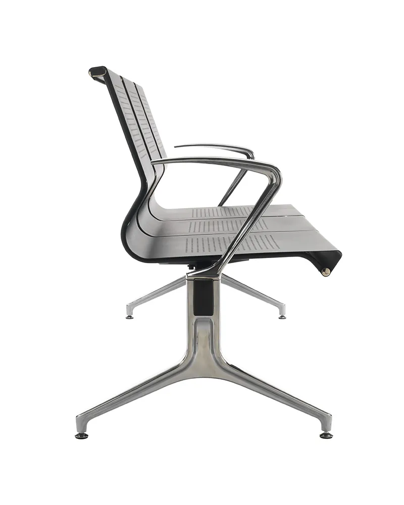 La serie Public propone sedute su barra da 3 posti, ideali per sale d’attesa in aeroporti, stazioni, ambulatori e spazi collettivi. La scocca in lamiera d’acciaio verniciata, con schienale e sedile traforati, offre resistenza, ventilazione e lunga durata nel tempo. Una soluzione solida e professionale per ambienti ad alto traffico.