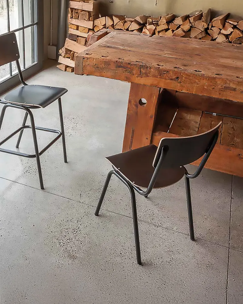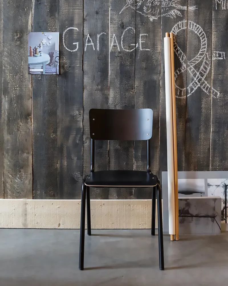 Stile deciso e funzionalità definiscono la sedia Robin. Struttura in metallo verniciato nero, seduta e schienale in laminato nero placcato su multistrato: una soluzione impilabile dal carattere urbano, ideale per locali e ambienti contract dallo stile industrial-chic.