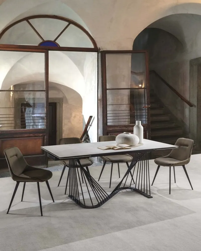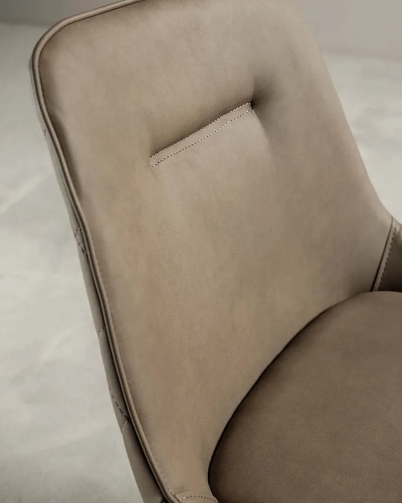 Elegante e sofisticata, la sedia Tide con rivestimento in ecopelle nabuk coniuga comfort e pregio estetico. La struttura solida in metallo incontra la morbidezza dei materiali, offrendo una seduta accogliente e raffinata, ideale per ristoranti, lounge e ambienti dal gusto ricercato.