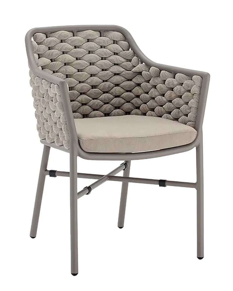 La poltroncina Topazio combina una struttura in alluminio verniciato con un rivestimento in corda textilene e gomma, offrendo comfort e leggerezza. Il cuscino sfoderabile garantisce praticità d’uso. Impilabile e resistente agli agenti atmosferici, è una soluzione ideale per bar all’aperto, terrazze e locali che cercano uno stile iconico unito a funzionalità.