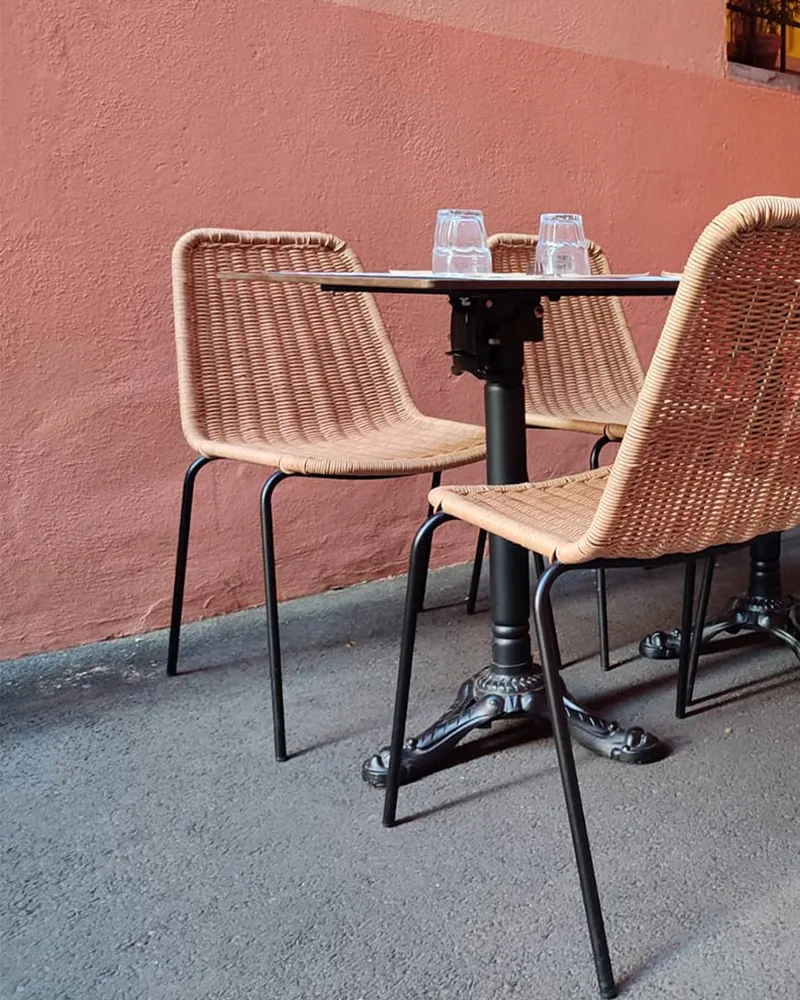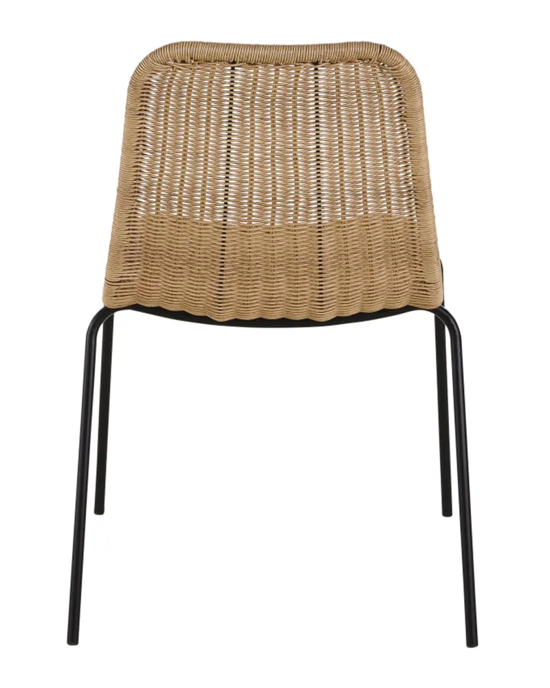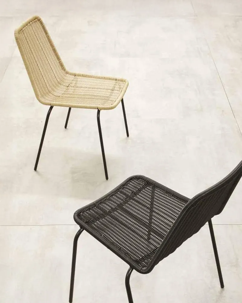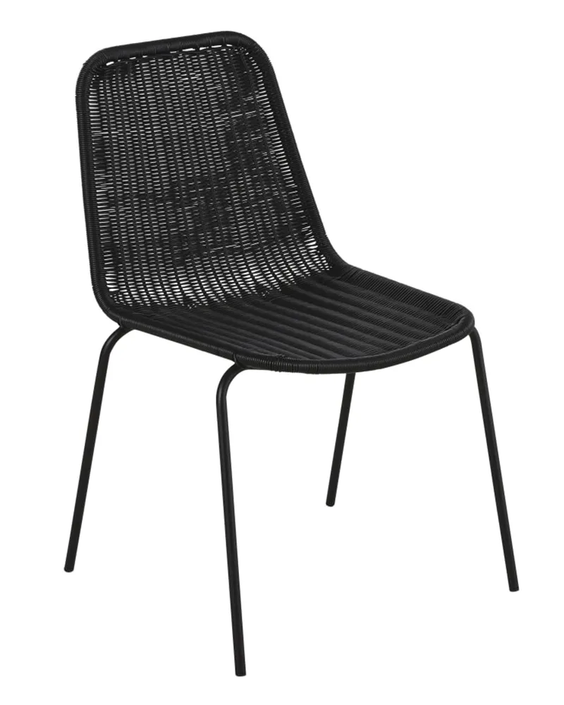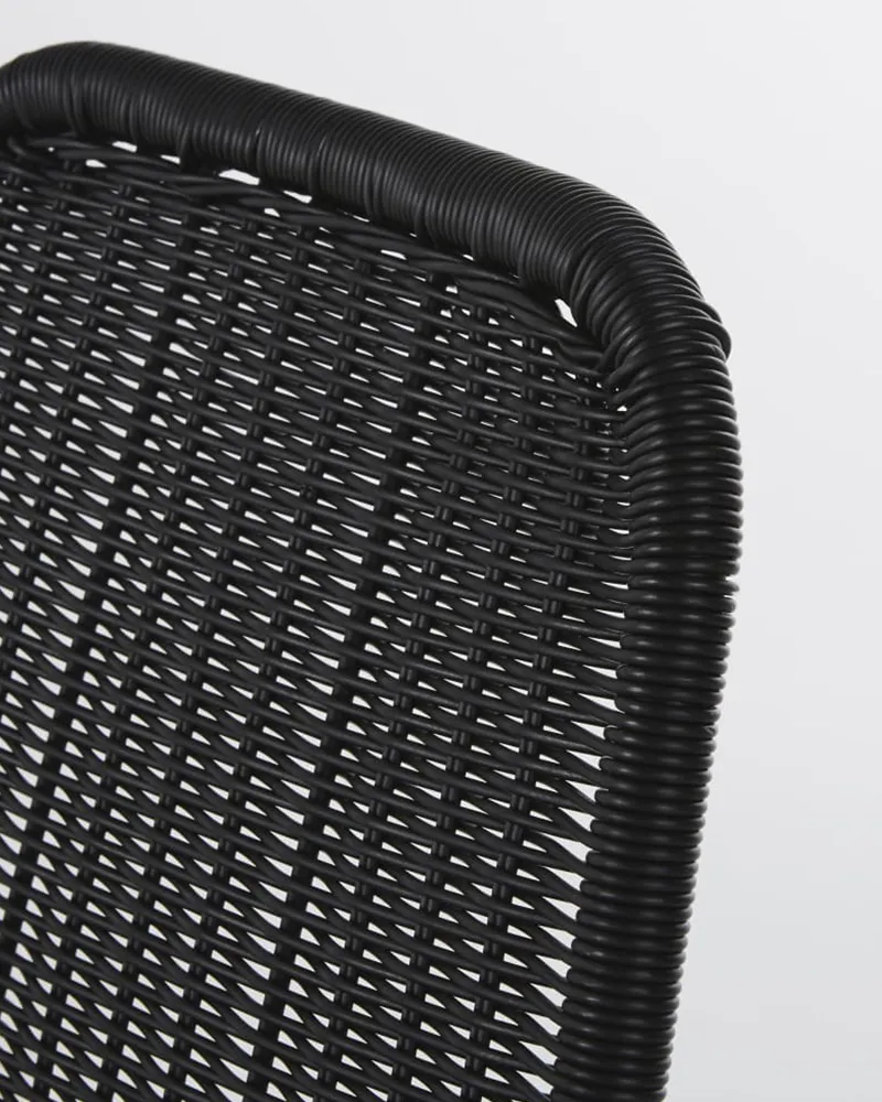 Versatile e resistente, la sedia Vibe è realizzata con struttura in metallo verniciato nero e seduta in rattan polipropilenico. Adatta per l’outdoor grazie alla sua resistenza agli agenti atmosferici, è impilabile e perfetta per ambienti dal gusto moderno.
